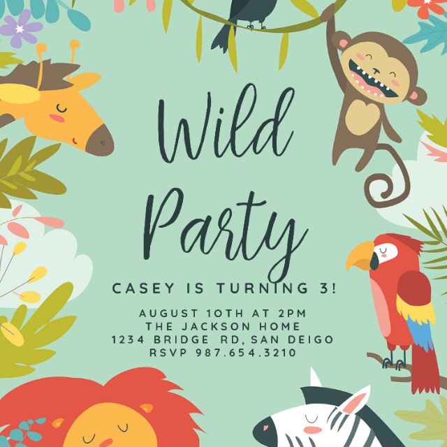 Go wild with this cute jungle themed party invitations. Personalize it with photos & text or purchase as is! These themes work for everything from a cute first birthday to an Personalize it with photos & text or purchase as is! Add maps, gift registries, calendar links & much more. The best jungle birthday invitation might be the one you create yourself. See more ideas about jungle invitations, invitations, birthday invitations. See more ideas about jungle birthday party, birthday party invitations, jungle birthday. Safari gold 1st birthday invitation boy with photo, editable template, jungle party any age birthday invite, safari animals theme pm003. Choose 'send online' & create your event. 50% off with code zcreatetoday. Hosting an adventurous jungle theme birthday party? Invite guests via email, text messages & facebook.