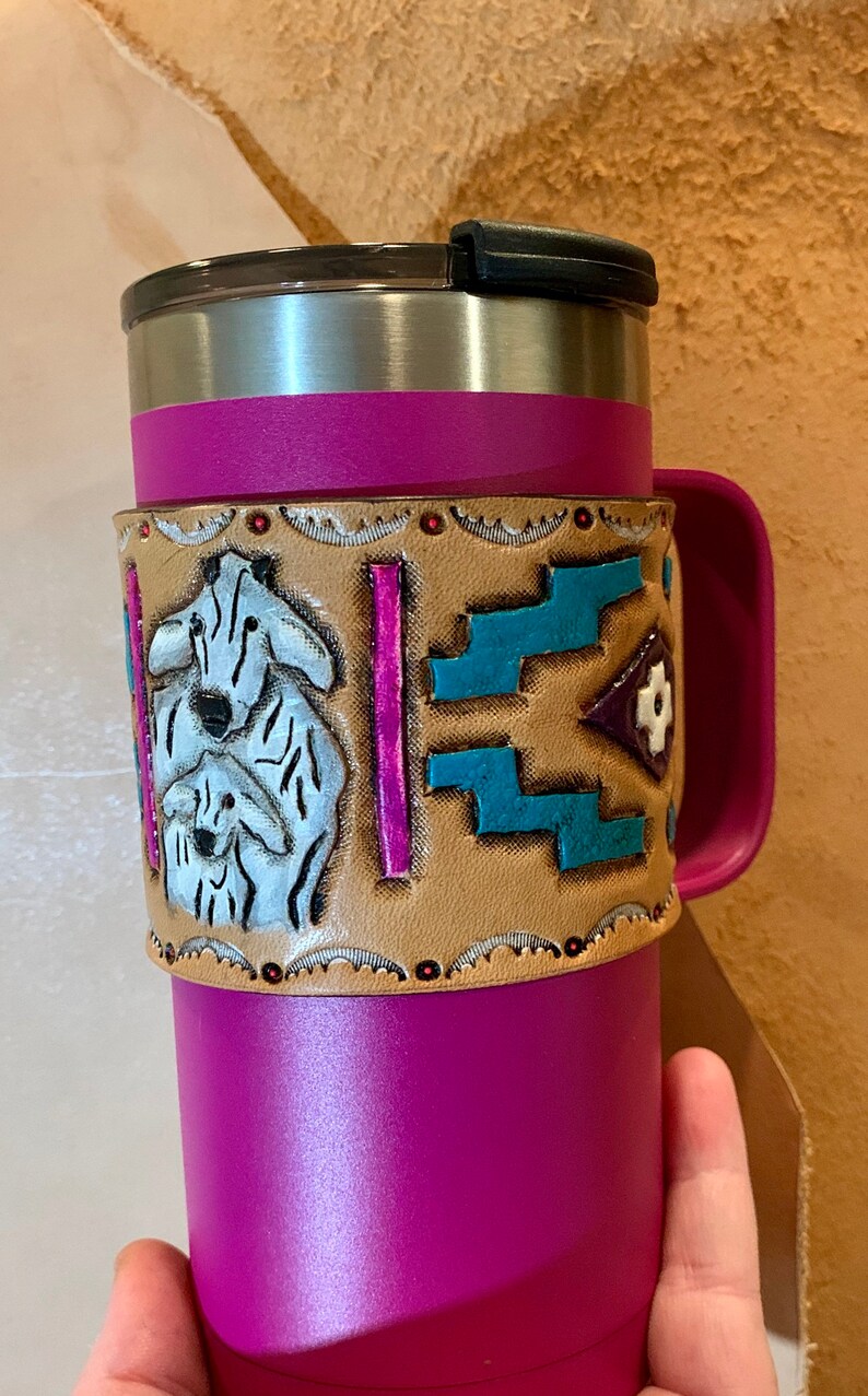 Our travel mugs are stainless steel, double wall insulated and come in 12oz, 16oz, and 20oz sizes.