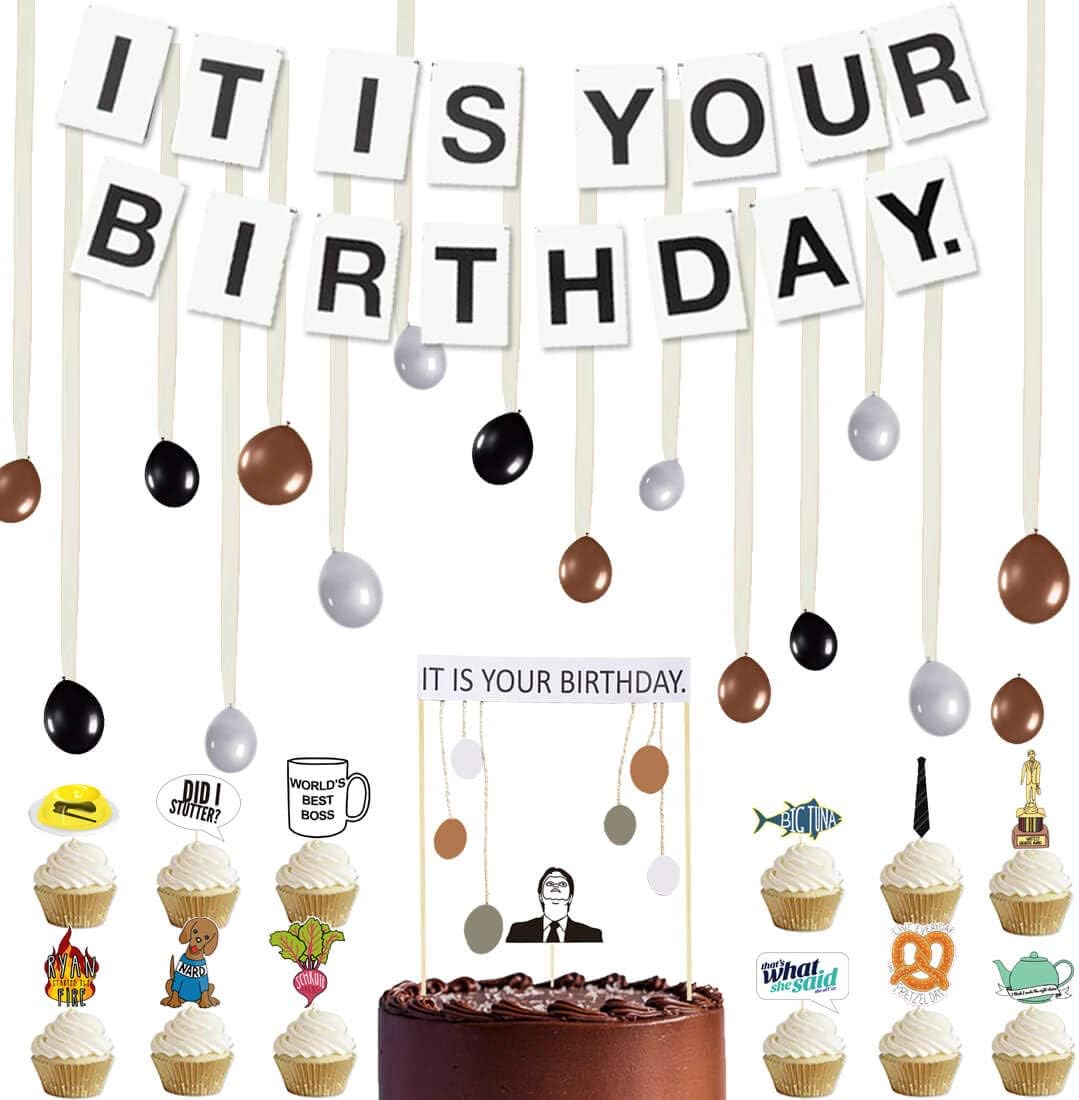 Perfect decoration for an office themed birthday party! If you have to give it a the office title to make it relevant, it's not worth posting. Sign in to leave a comment. It is your birthday banner, the office dwight theme infamous husband birthday party decorations, brown black grey balloon with white streamers tape 49pcs full kit. Every millennial needs an office themed birthday party and i am here to help you out!