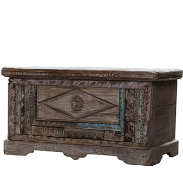 Reclaimed Wood Trunk Coffee Table / Timbergirl Reclaimed Wood Carved Panel Trunk Coffee Table Timbergirl / Our lacquer finish with light and dark tones allows for the wood's natural grain to show.