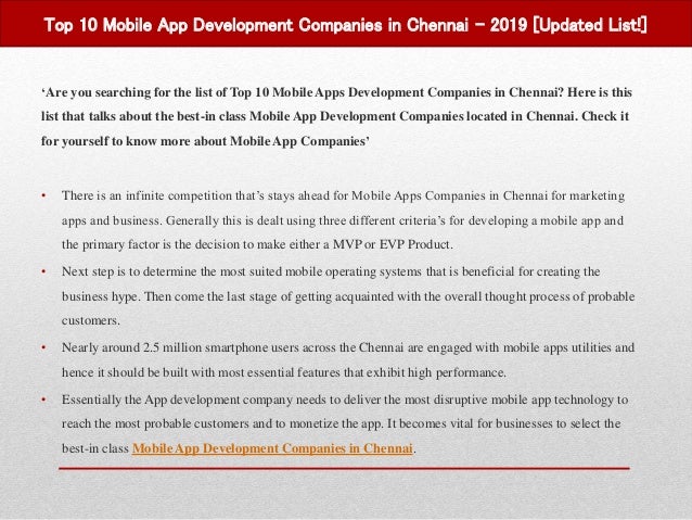 Hire mobile app developers near chennai. They offer web and mobile application development services for various smes and large companies with the. List of the top mobile app development companies in the world. Contact us and get a free quote or reach out to us. Here is the list of 10 top mobile app development companies in chennai you should choose 1.